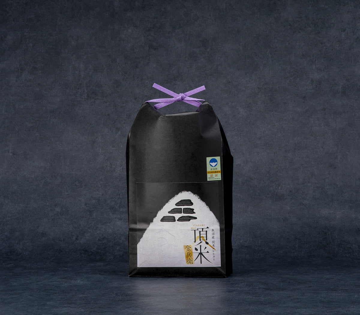 頂米の最高峰「頂米金兵衛」の従来品種の魚沼産コシヒカリです。頂米は標高約640mという、コシヒカリが栽培できる限界近くの標高で栽培をしています。日本一高い、山の頂で栽培する魚沼産コシヒカリのため、「頂米」と命名しました。もっともきれいな水で栽培しているお米だから、あまくておいしいく仕上がります。